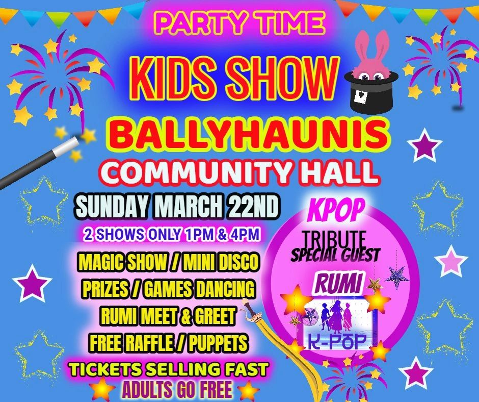 Partypartytime are Delighted to be bringing their Awarding Winning Party Time Kids Show to Ballyhaunis at the Ballyhaunis C Hall 2 shows only. Over 20 years entertaining kids and families.